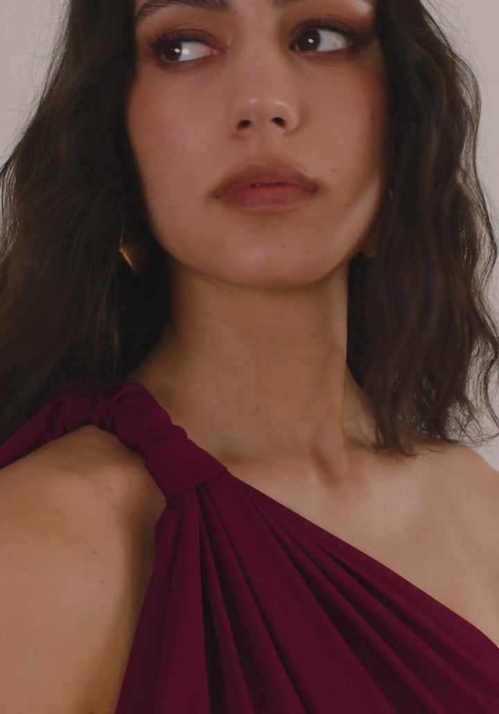 Αρχαιοελληνικού τύπου φόρεμα με έναν ώμο και ανάλαφρη φούστα σε γραμμή ”Α”.