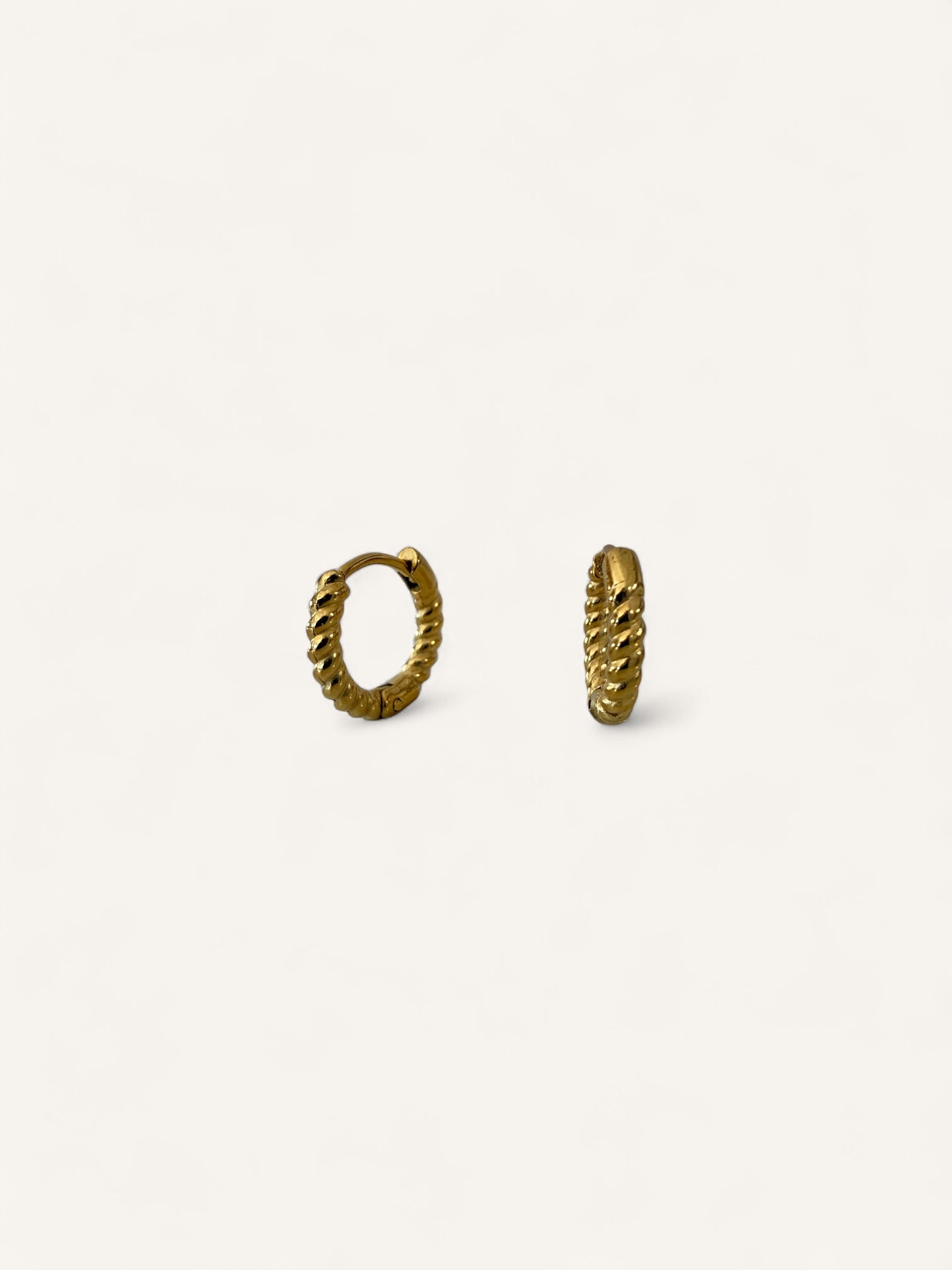 Small hoops with a twisted textured design. Perfect for everyday wear, adding a subtle vintage touch.