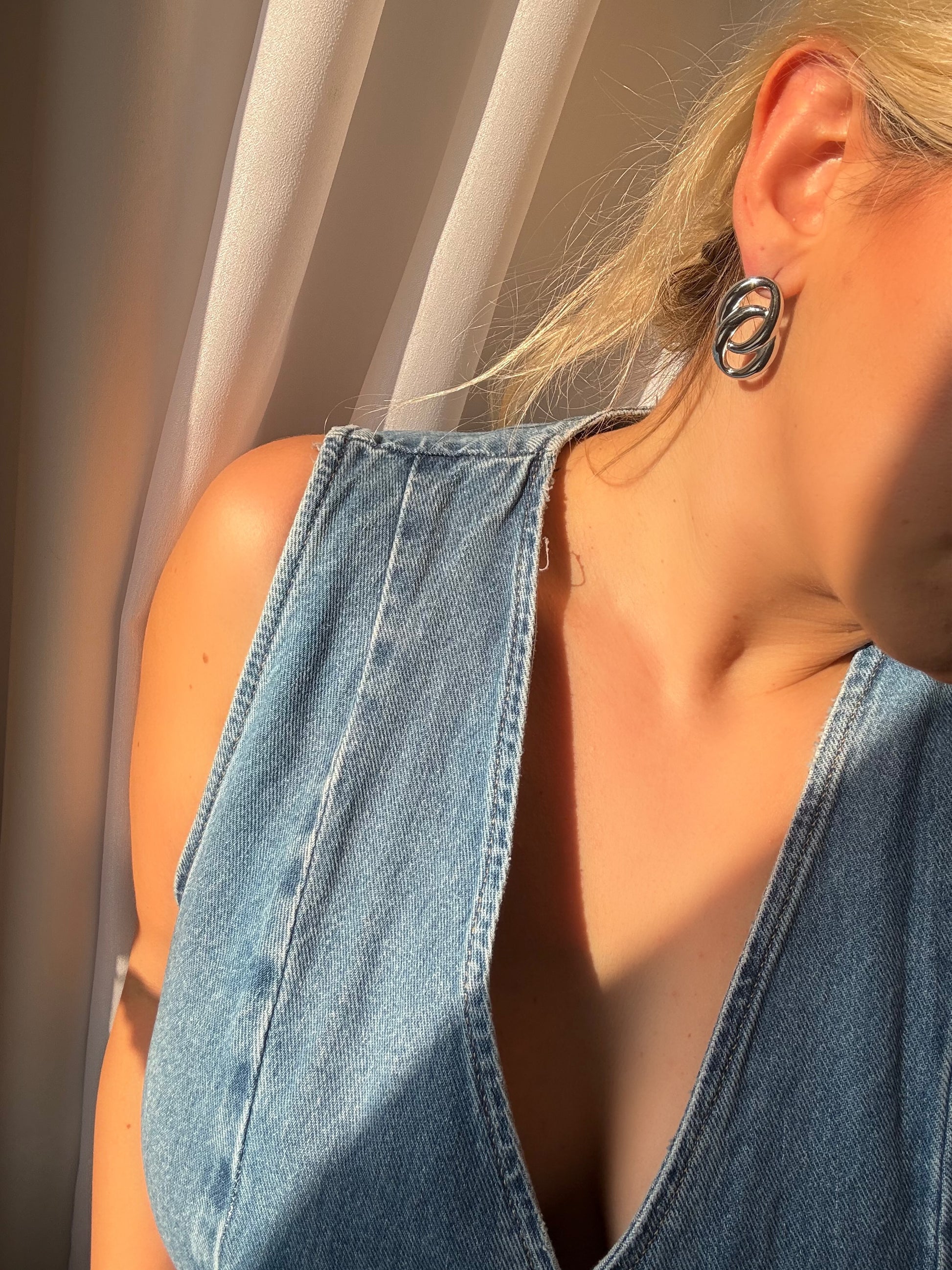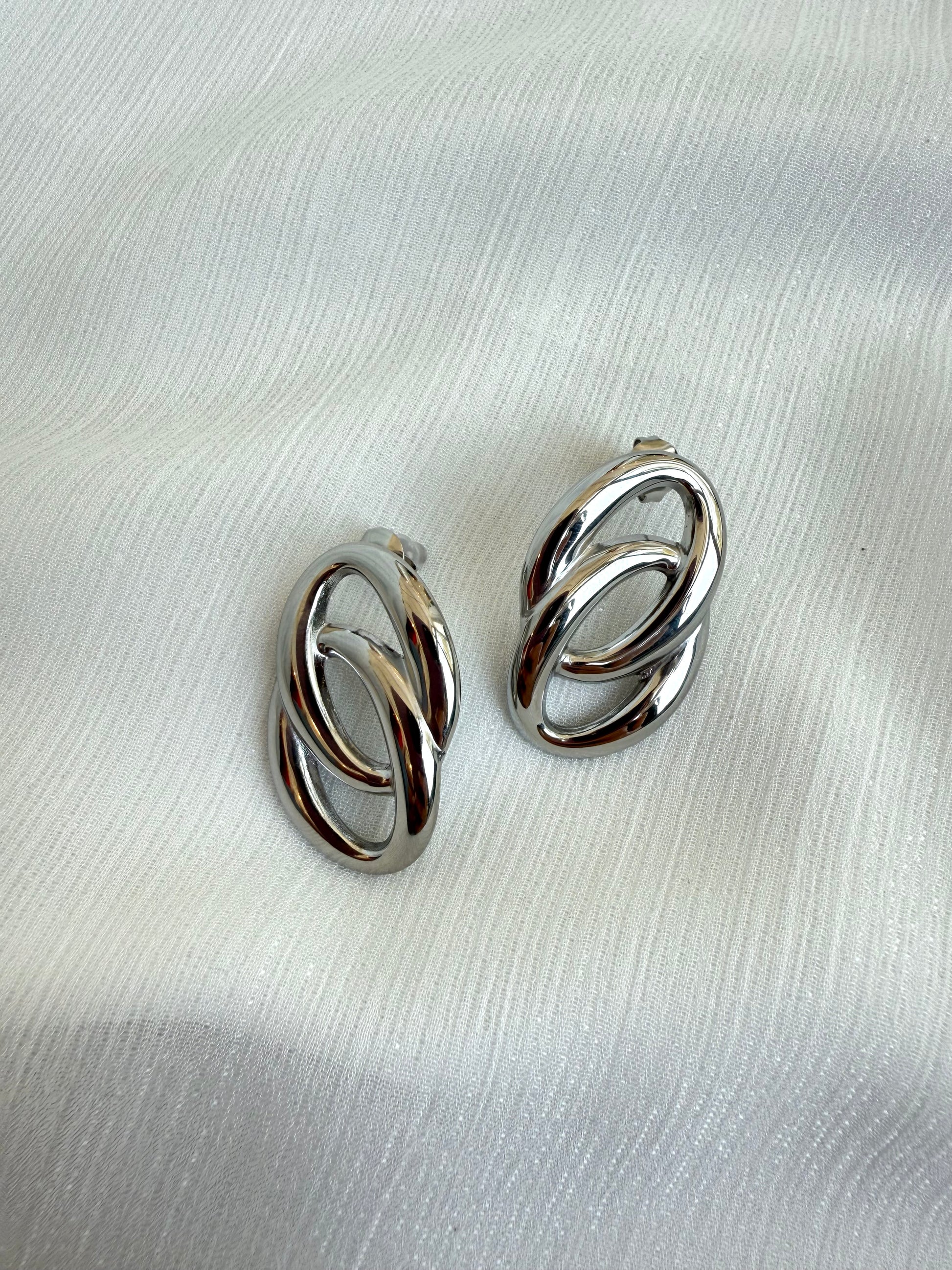 Sleek silver-tone earrings featuring two interlocking bold links. Modern and minimal, they add an edge of power and polish to your everyday look.